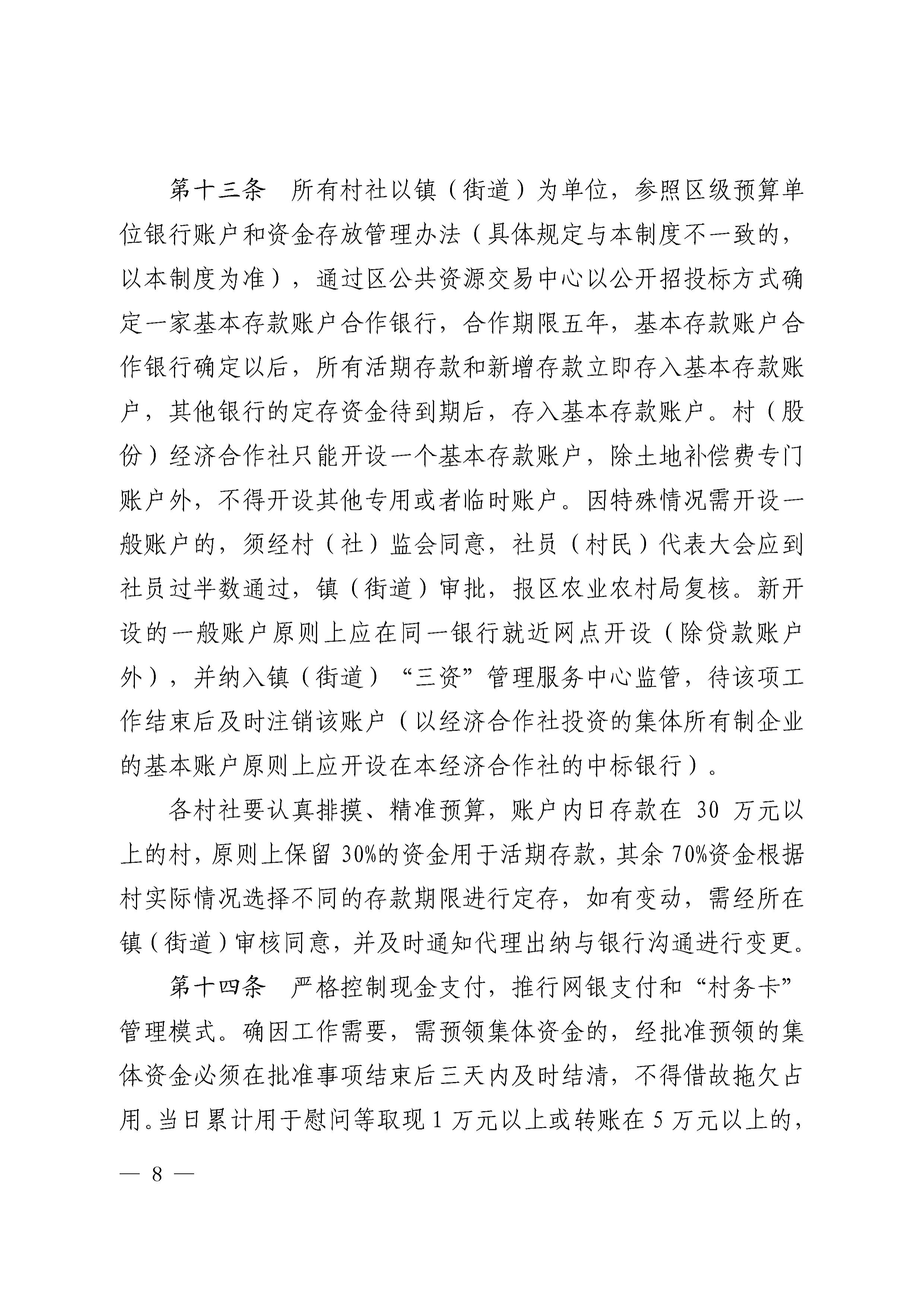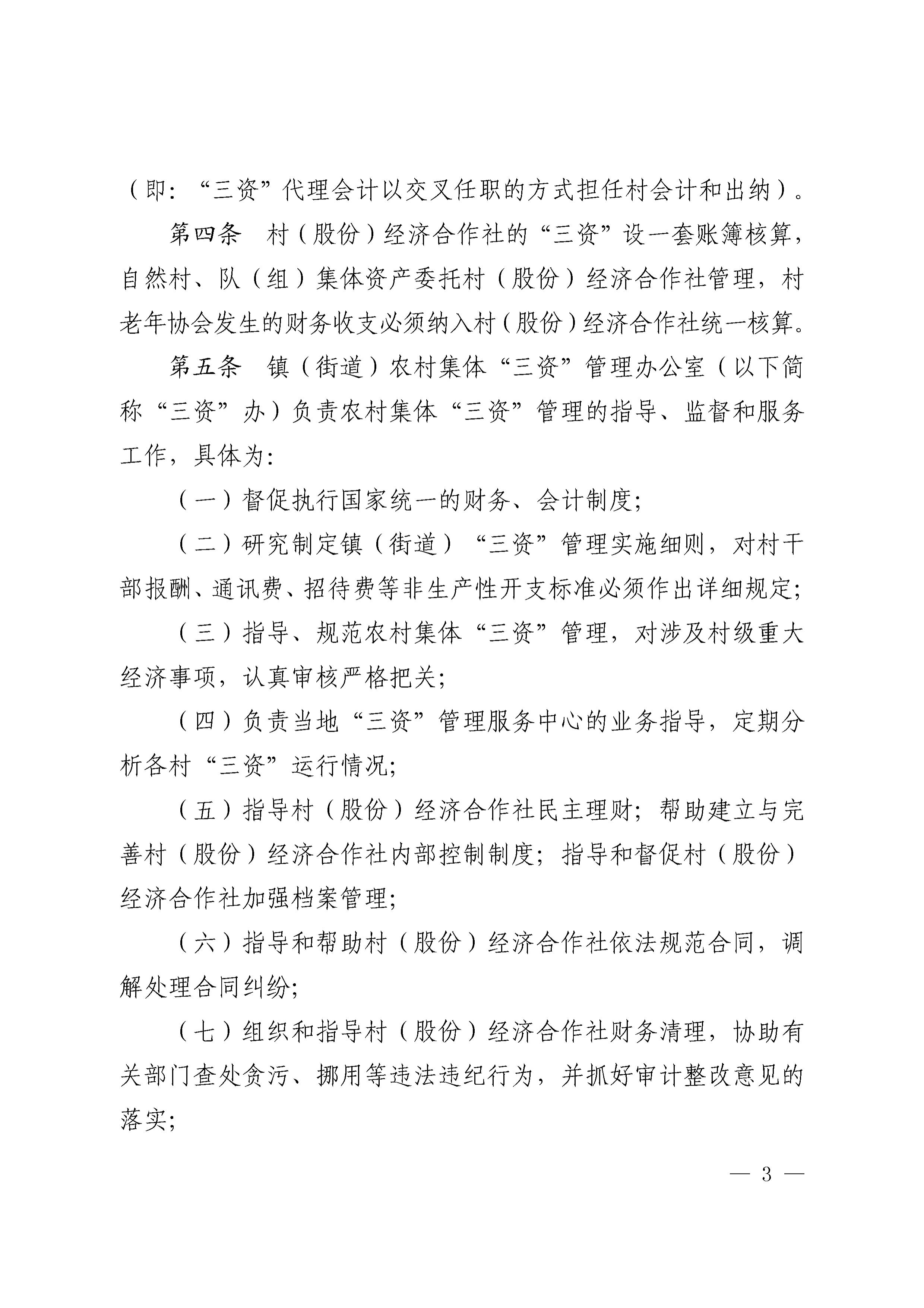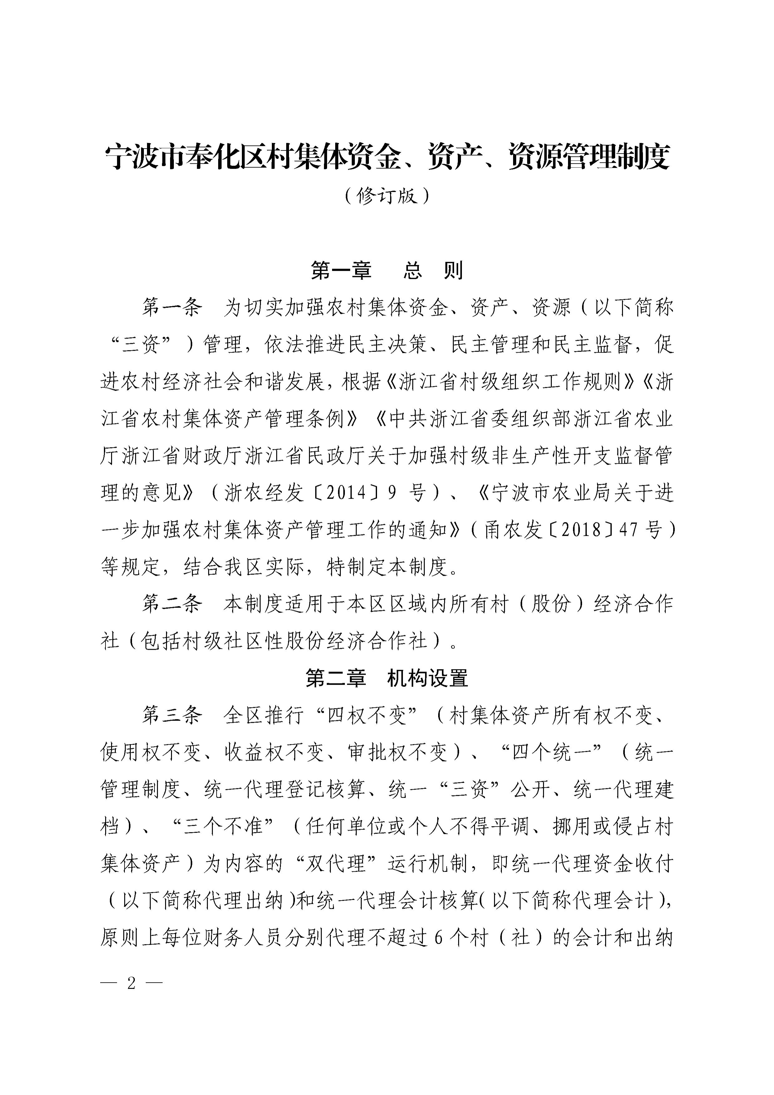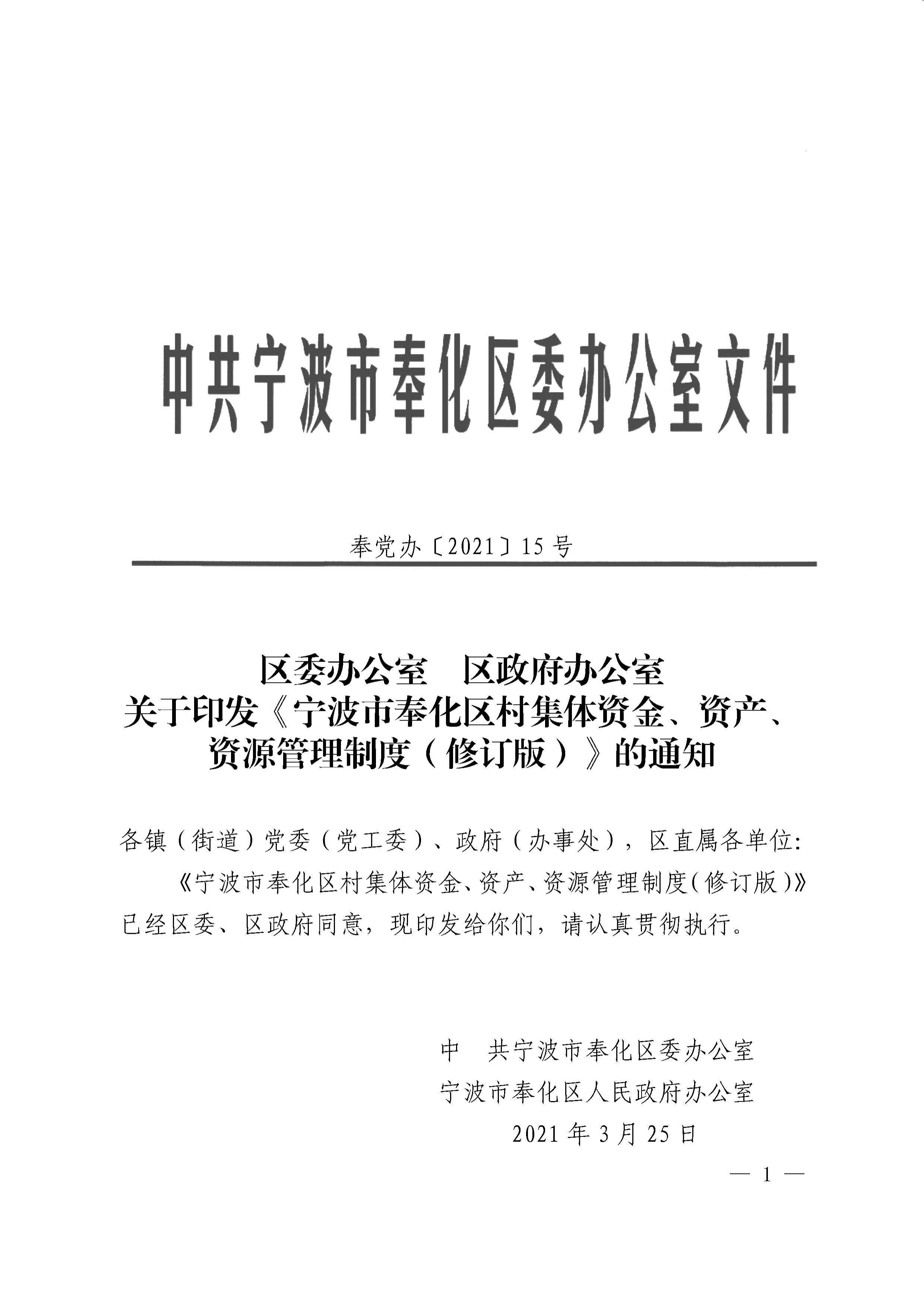 关于印发《奉化区村集体资金、资产、资源管理制度(修订版)》的通知