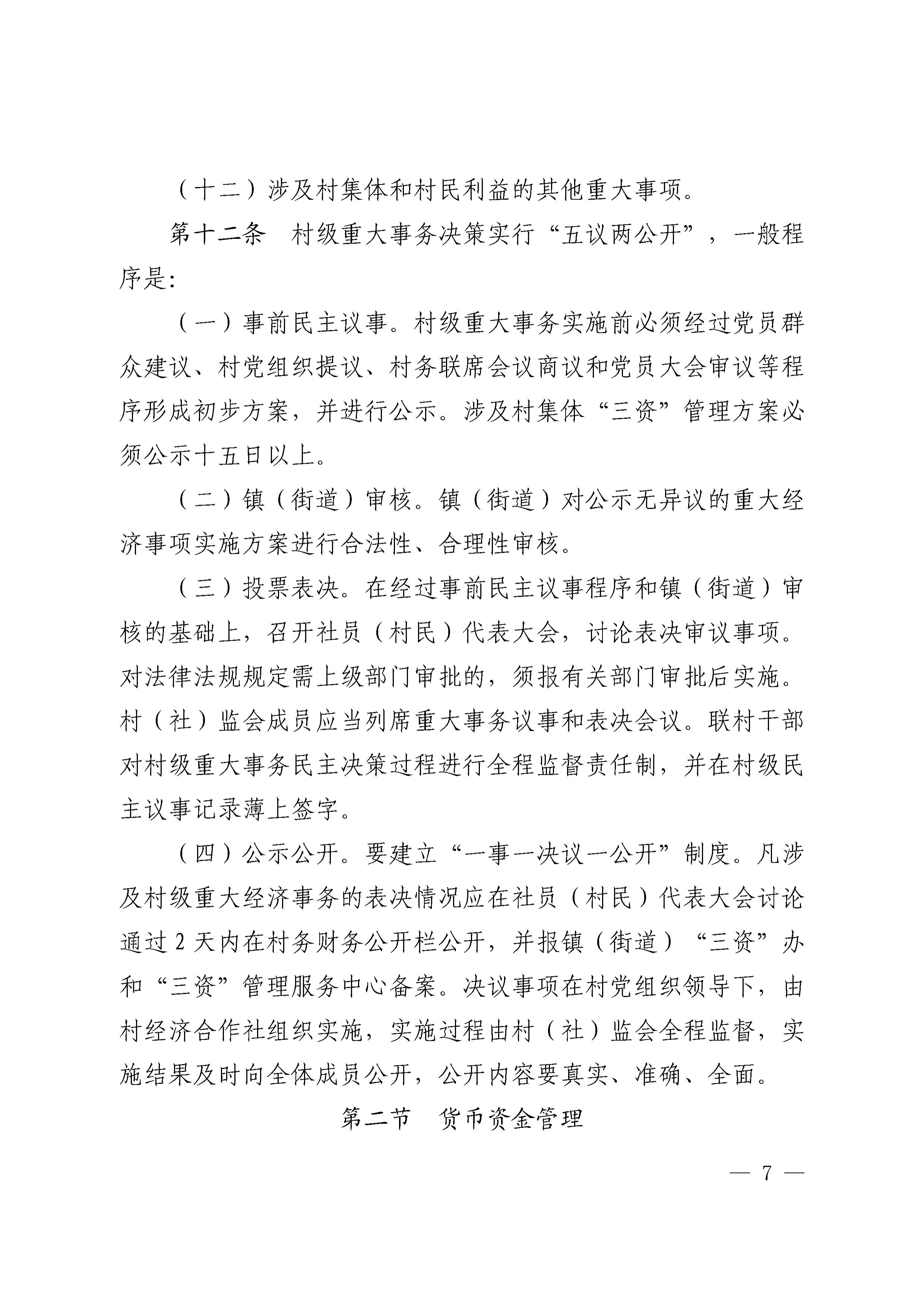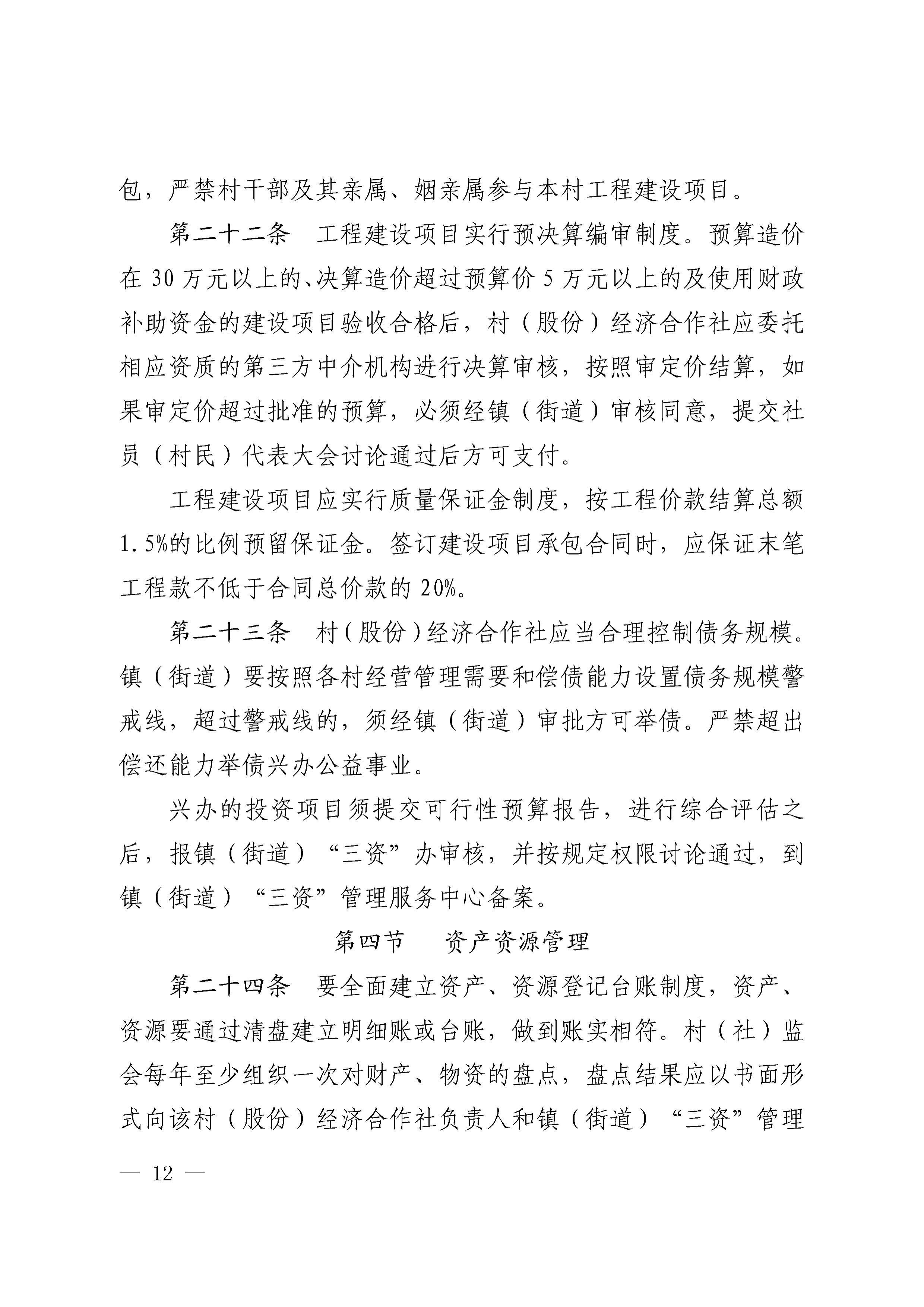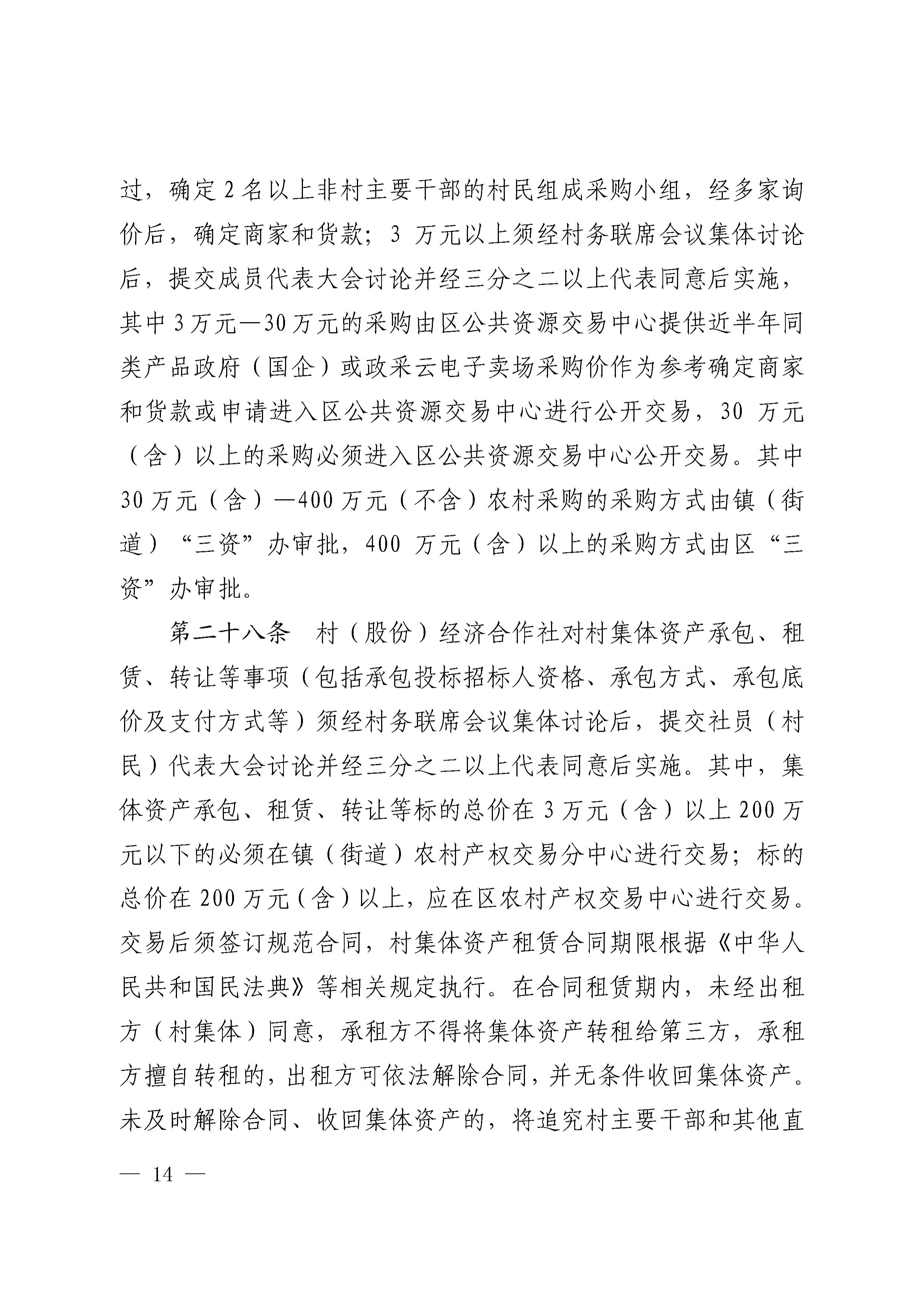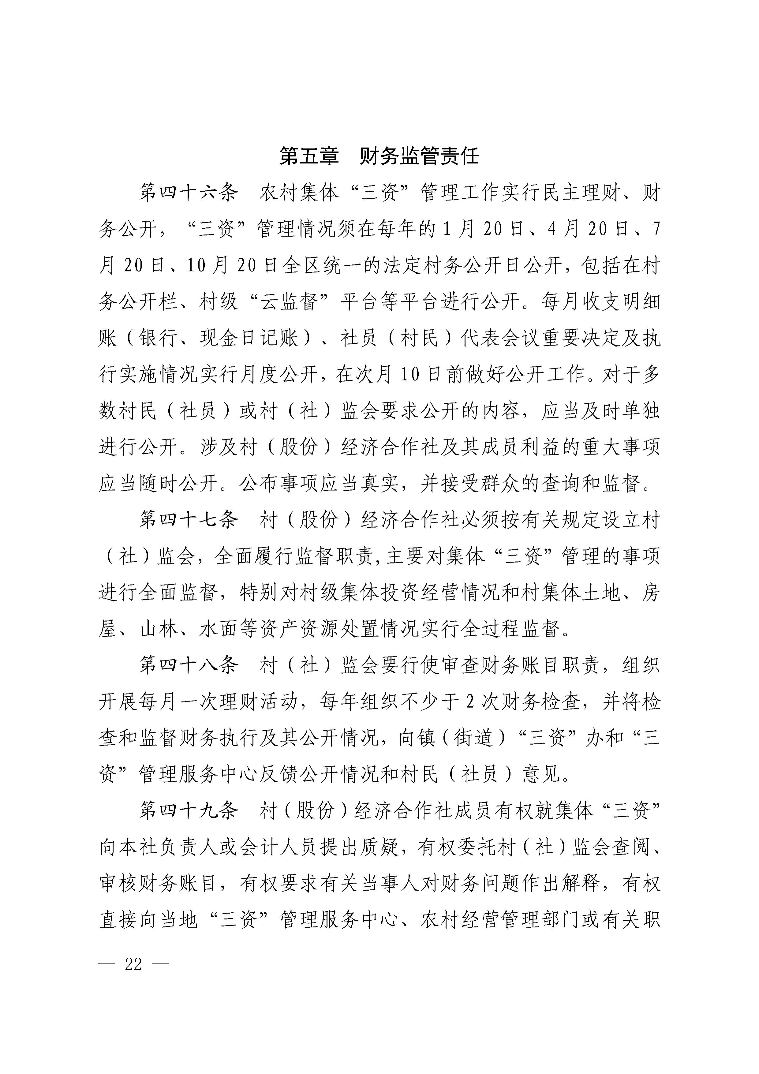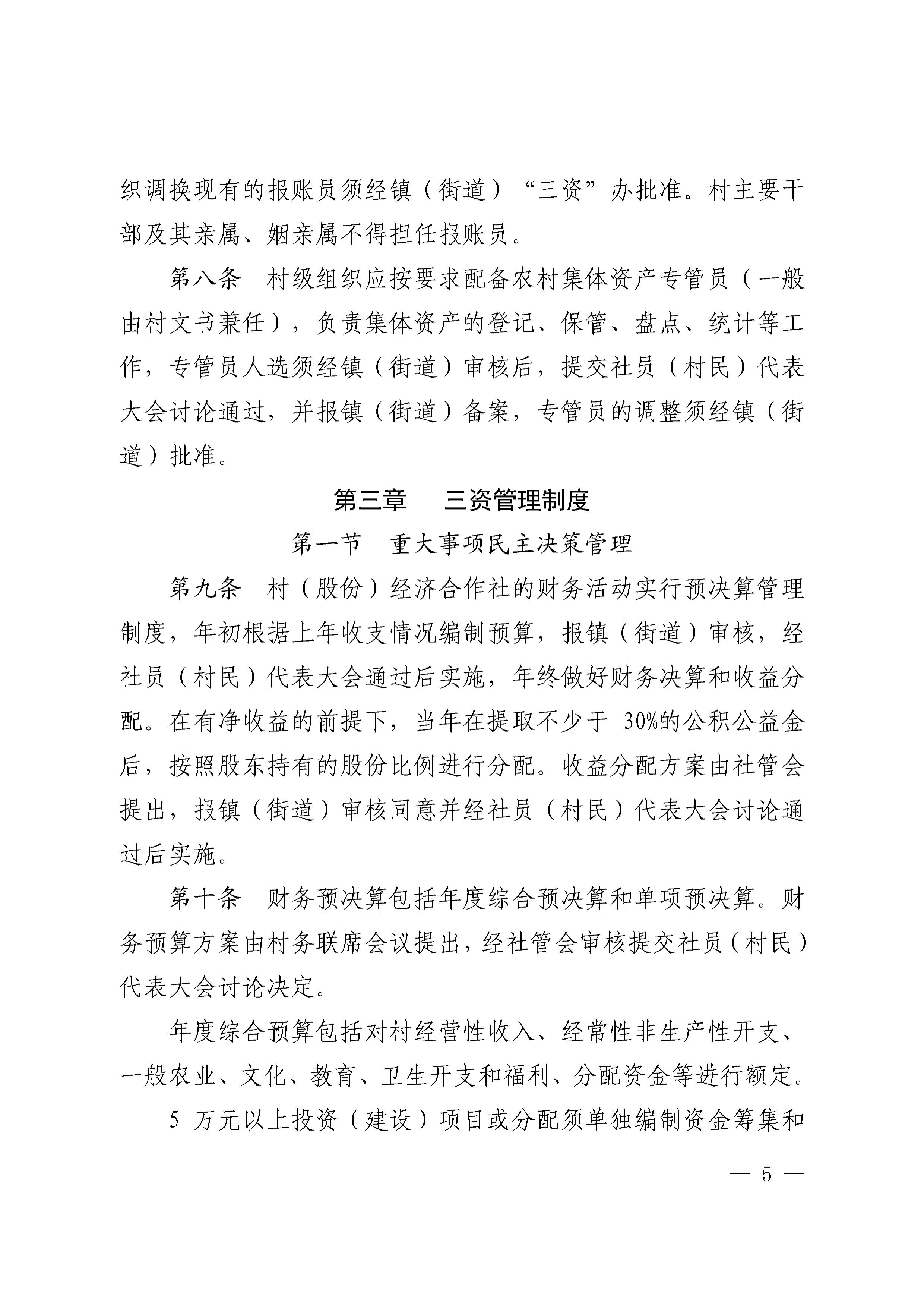 关于印发《奉化区村集体资金、资产、资源管理制度(修订版)》的通知